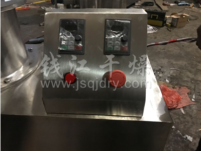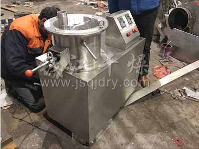 QZL型抛丸机将前道工序制成的湿颗粒投入旋转离心盘内,使潮湿的颗粒受到环隙空气浮力,旋转离心力、自身重力作用,呈环形绳股状运动,从合理方向通过多流体喷枪向运动料层喷入配方液,从而形成圆球度很高的球丸,原理与旋转流化床类似。