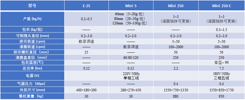 用于挤出-滚圆法小丸成型,既可制备空白小丸、含药丸心,是制药、食品、化工等行业制备小丸的理想设备,以及对制备的小丸进行干燥、上药及包衣。