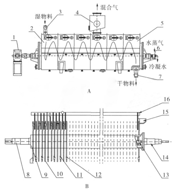 圆盘干燥机是单轴,结构简单,具有自清理作用,防止物料粘壁,故障率和维护费用低;